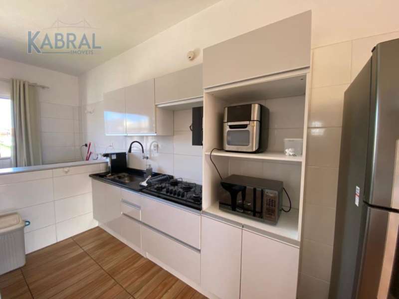 Apartamento mobiliado com 02 dormitórios, sala e cozinha integradas, área de serviço, 01 banheiro e 01 vaga de garagem.