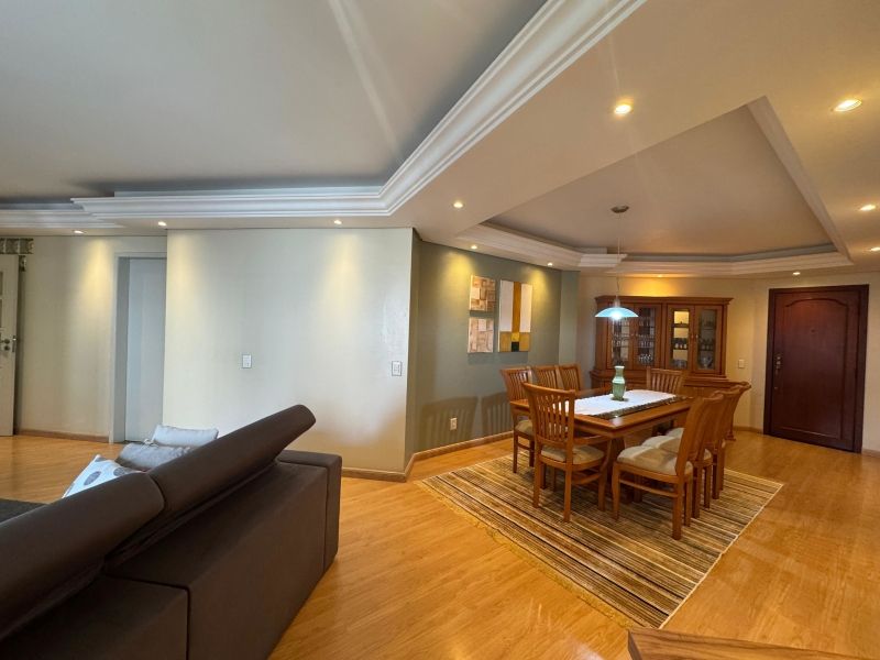 Apartamento no Centro de Florianópolis com 135m² de frente para rua, 03 dormitórios, sendo 01 suíte, sala de estar e jantar integradas com sacada, cozinha ampla, área de serviço ventilada e 02 vagas de garagens livres e cobertas.