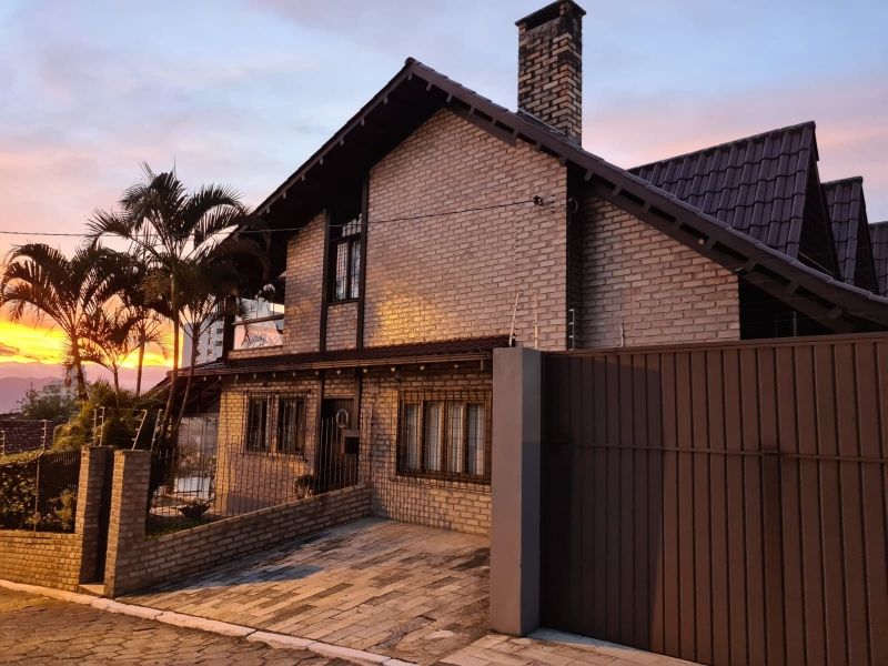 Imóvel de tijolo a vista, murada e gradeada, com acesso para pedestre e veiculo, 2 pavimentos e piscina no quintal.