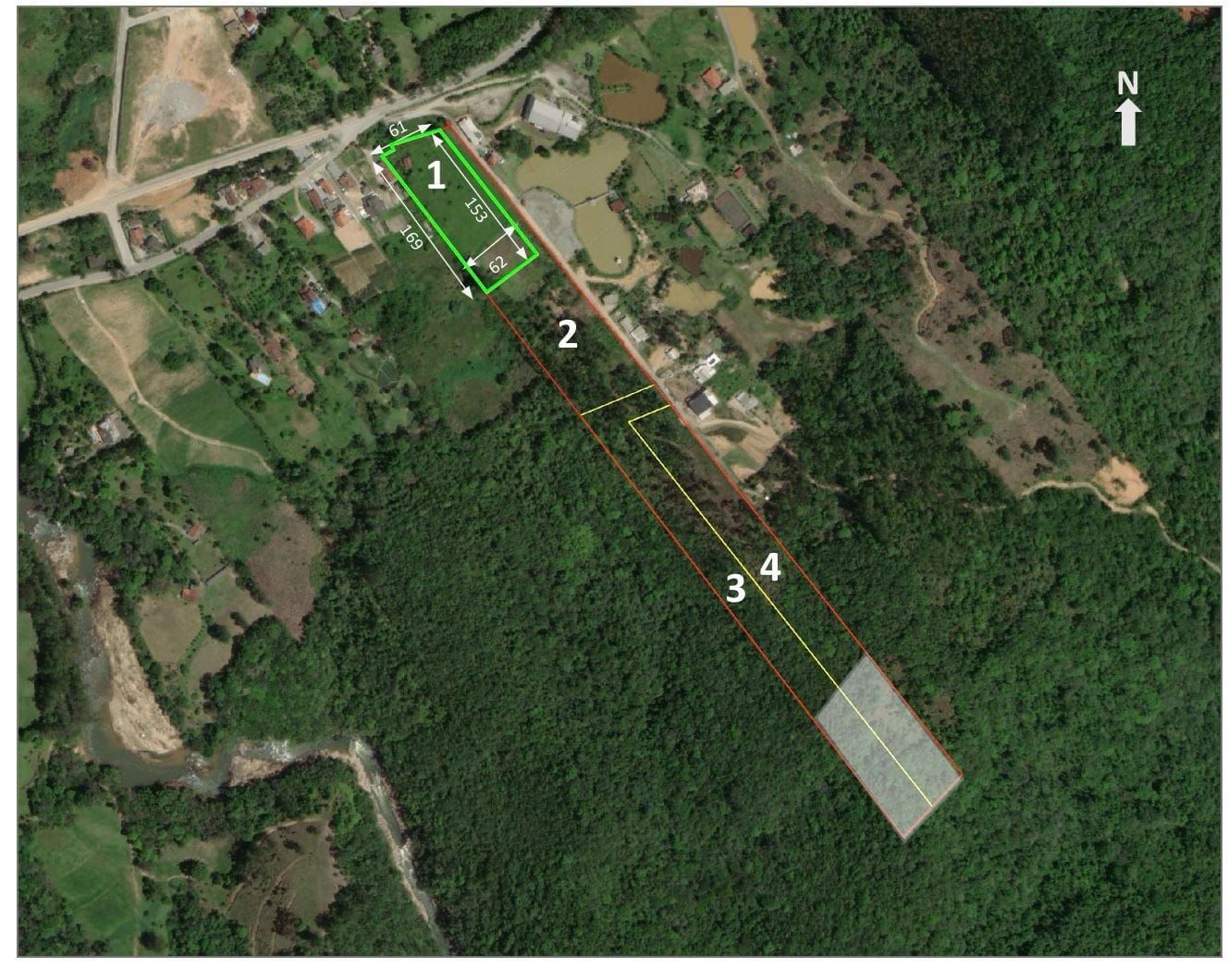 Sítio em Águas Mornas, com construção em Alvenaria (sobrado), referente à fração ideal de 24,76% da área total de 49.357,85 m2. Fica localizado na Estrada Geral Vargem Grande, com belíssima vista.