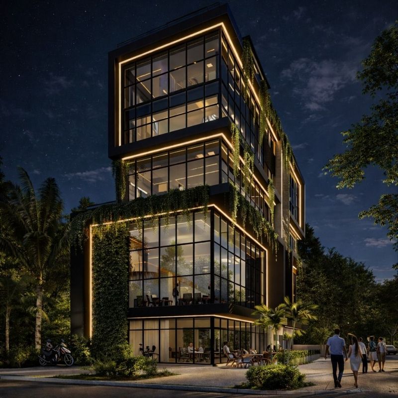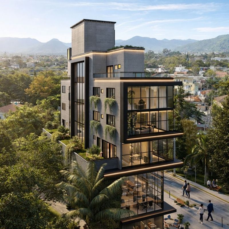 Empreendimento inovador multifuncional no Campeche com 6 pavimentos na Avenida Pequeno Príncipe, uma das principais vias do bairro do Campeche. Edifício Comercial e Residencial a poucos minutos do mar. Neste anúncio, sala comercial térreo 23,82 m². Hall de entrada imponente, elevadores de alta capacidade e áreas de convívio confortáveis